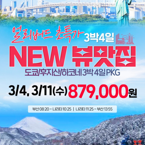 ✨NEW 뷰맛집✨ 도쿄/후지산/하코네 3박 4일 PKG